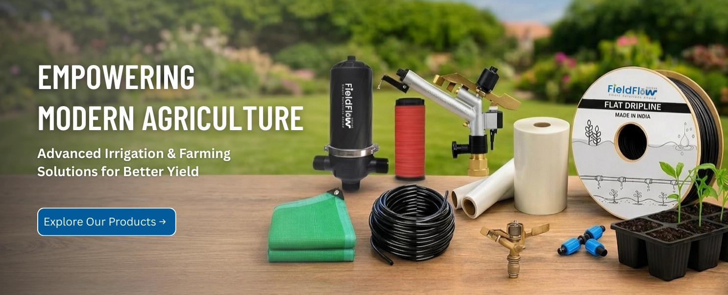 Fieldflow Greens Pvt. Ltd. manufactures a wide range of agriculture irrigation equipment and plumbing solutions, including drip irrigation systems, sprinkler systems, HDPE pipes, fittings, and accessories designed for efficient water management.