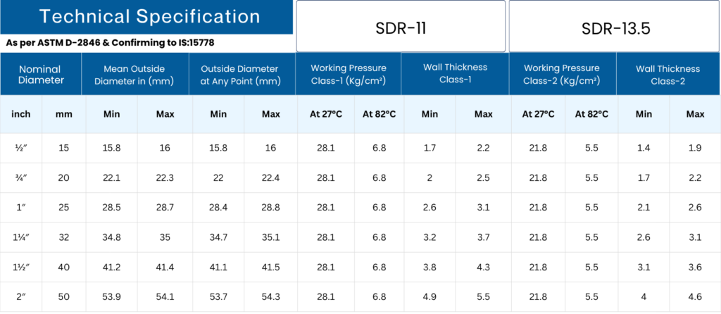 Standard: ASTM D-2846 & ASTM F-441
